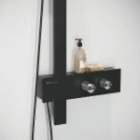 Étagère horizontale avec mitigeur intègre, pratique pour poser le gel douche.