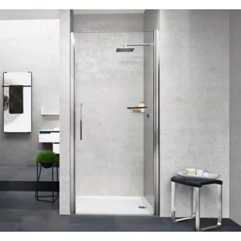 Description Pour installation en niche ou en angle (associé à 1 paroi fixe).Ouverture intérieure/extérieure.Profilés aluminium silver.Verre transparent 6 mm sécurit Crystal Clear traité anti-calcaire.Charnières relevables.Poignée métallique chromée.Réversible.