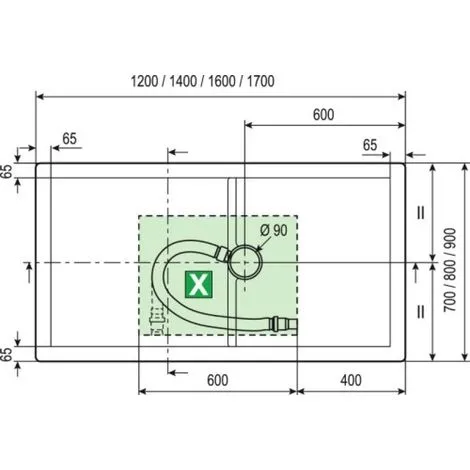 Conditions de livraison Livré avec bonde siphoïde Ø 90 mm à sortie horizontale.
